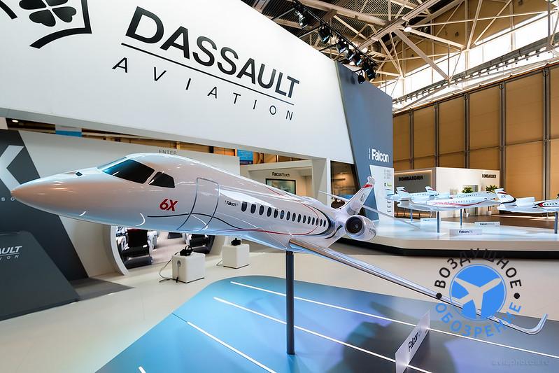 В рамках RUBAE 2018 Dassault представила и новейший двухдвигательный бизнесджет Falcon 6X типа ultra widebody, который планируется ввести в эксплуатацию в 2022 году. Новая модель способна преодолевать расстояния до 10 186 км и отличается самым высоким (1,98 м) и широким (2,58 м) салоном среди бизнесджетов. Самолет позволит совершать беспосадочные рейсы между Москвой и Нью-Йорком или Москвой и Сингапуром при скорости 0,85М.